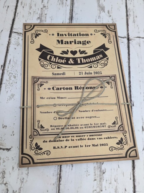 Faire part Mariage Thèmes Bois Champêtre Dentelle Florale